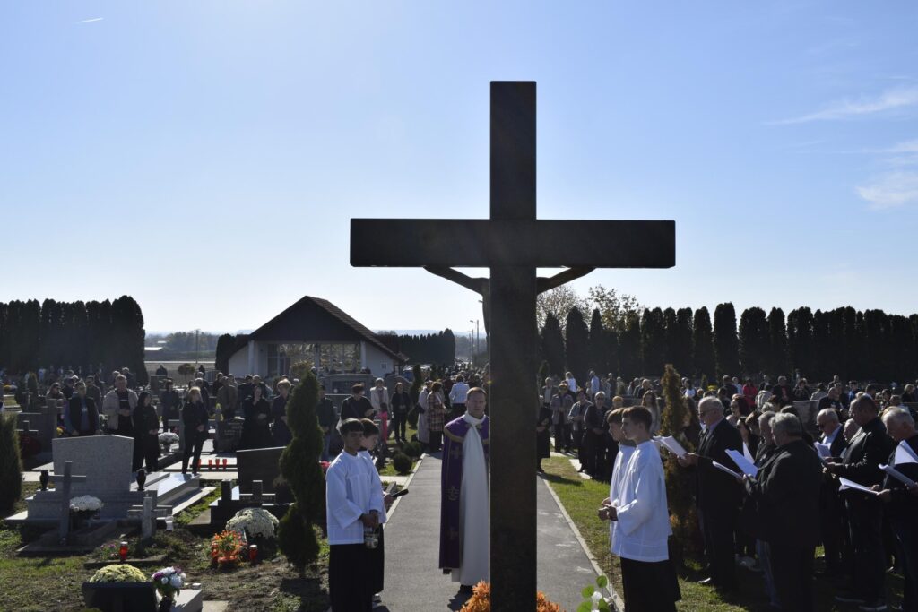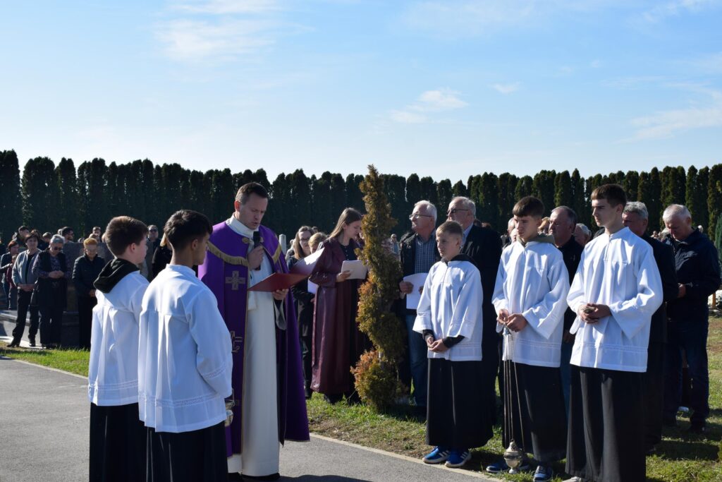 Uvodeću u misno slavlje vlč. Bilić govorio je o slavlju svetkovine Svih svetih te istaknuo: “U zajedništvu smo jednog srce i jedne duše, ne samo sa posjetiteljima groblja i svima koji smo se okupili, već i sa svim spašenicima na nebu koji pripadaju proslavljenoj crkvi i s dušama u čistilištu. Oni su trpeća Crkva, a mi na zemlji tvorimo putujuću Crkvu, budući da putujemo prema našoj domovini koja je na nebesima, kako je rekao sv. Pavao” rekao je između ostalog u svom uvodu u misno slavlje vlč. Bilić.