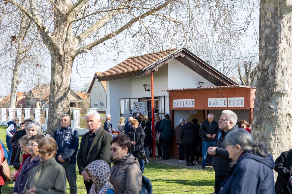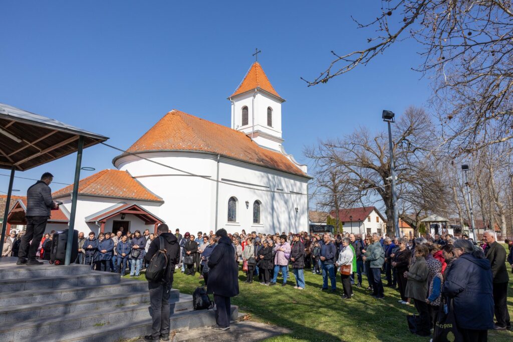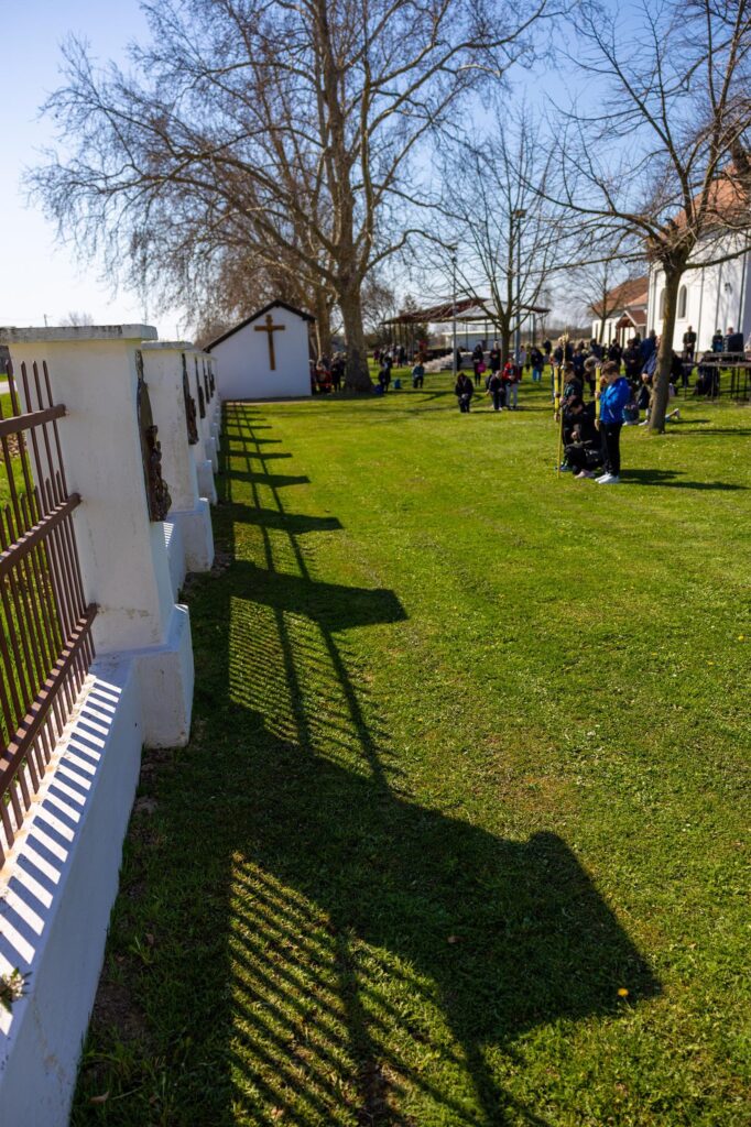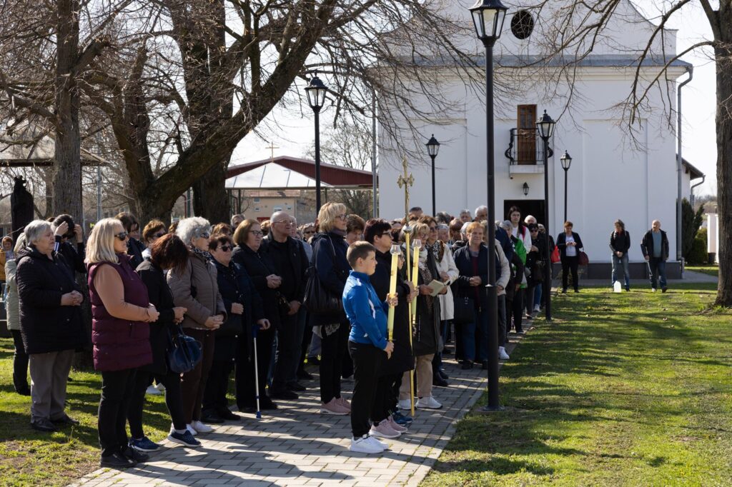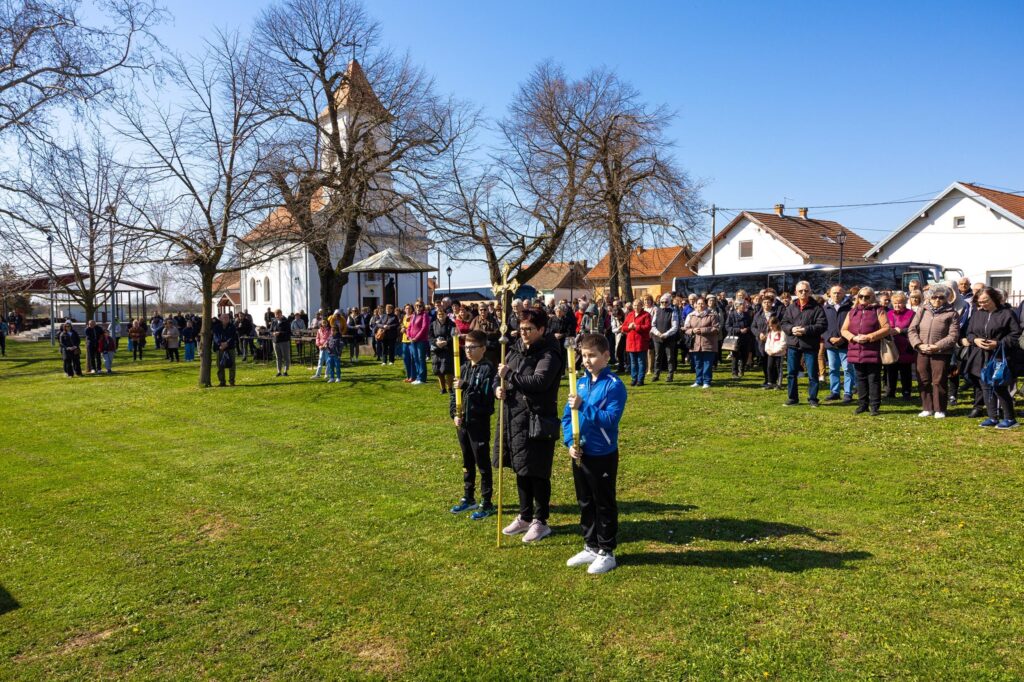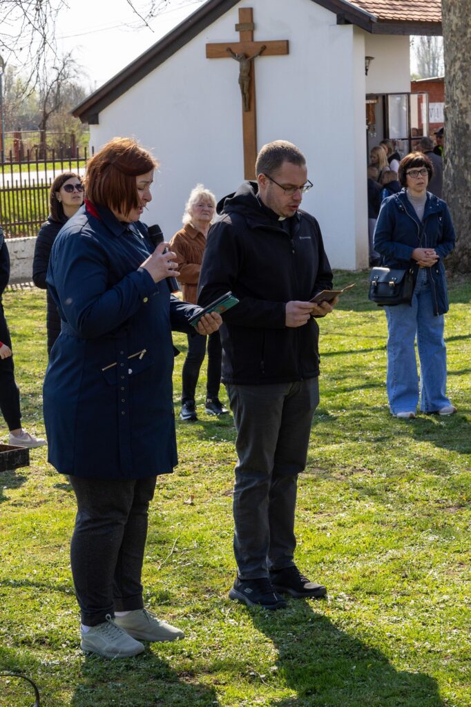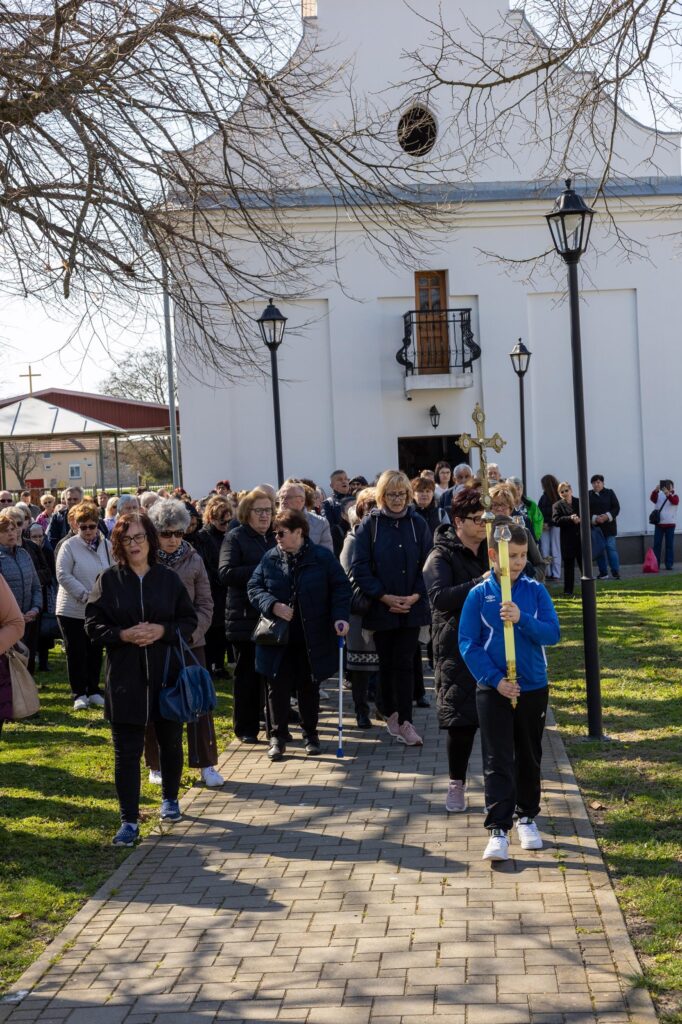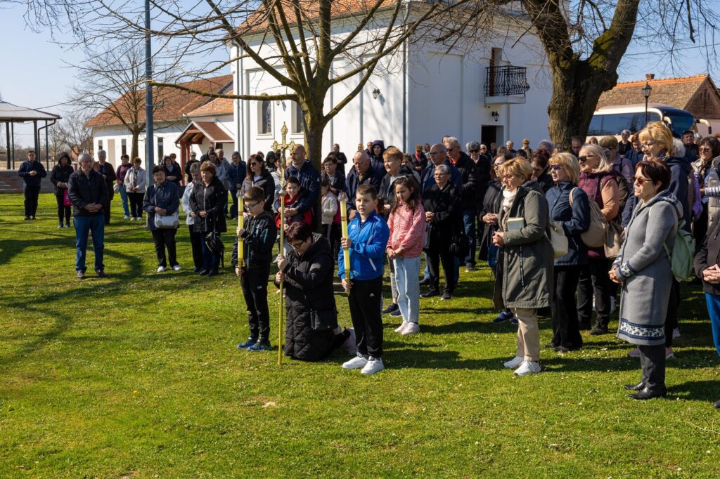 Križni je put unutar svetišta predvodio vlč. Dominik Nedeljković, župni upravitelj Župe sv. Petra apostola u Petrijevcima. Nakon pobožnosti križnoga puta i pristupanja sakramentu svete ispovijedi, vjernici su nastavili svoje putovanje prema Vukovaru gdje je u Crkvi sv. Filipa i Jakova slavljena misa. Prije početka euharistijskoga slavlja riječi dobrodošlice uputio je fra Tonio Vučemilović, župnik i gvardijan Župe i Samostana sv. Filipa i Jakova u Vukovaru.