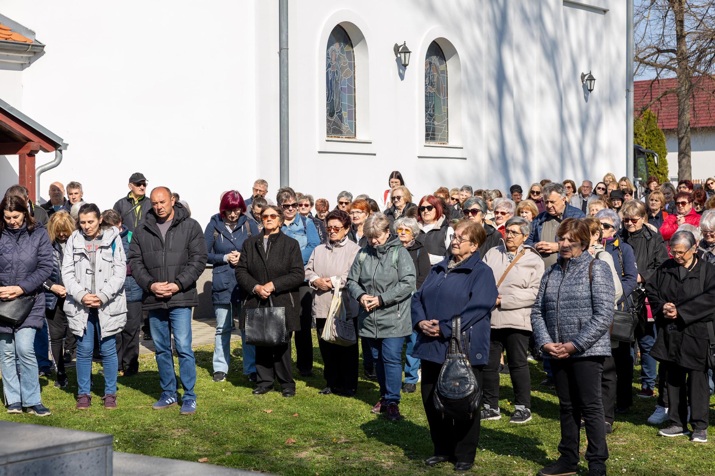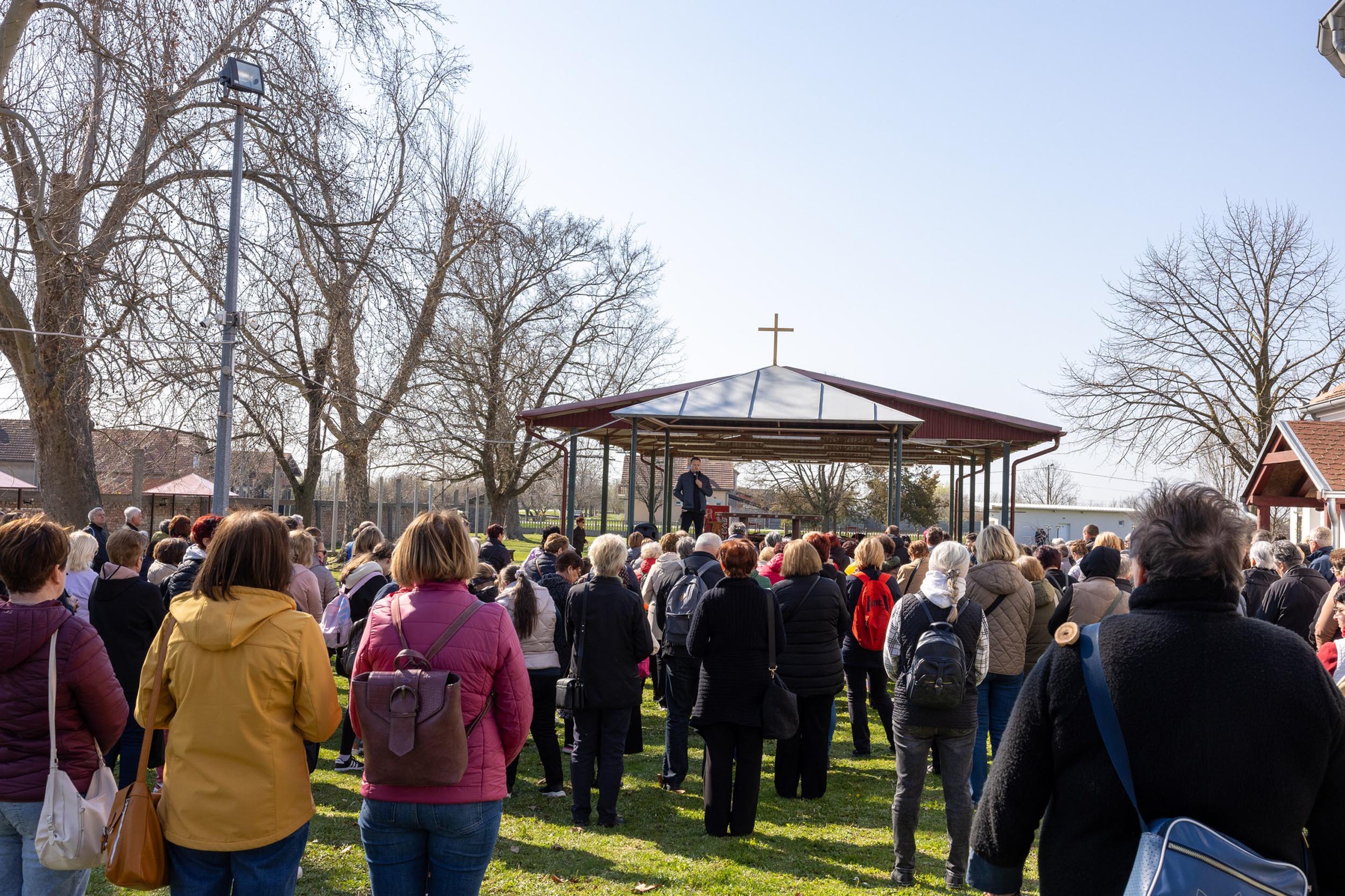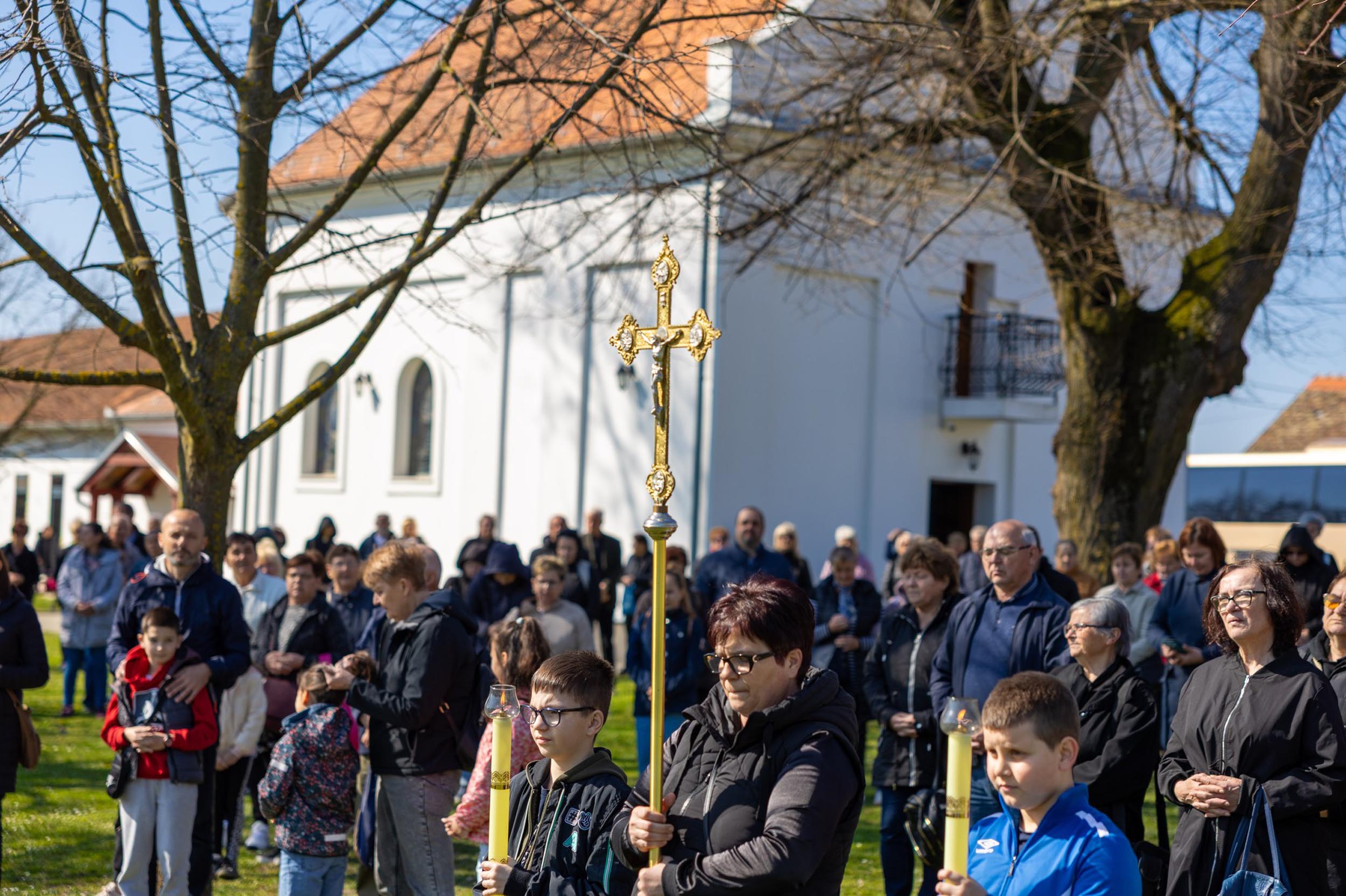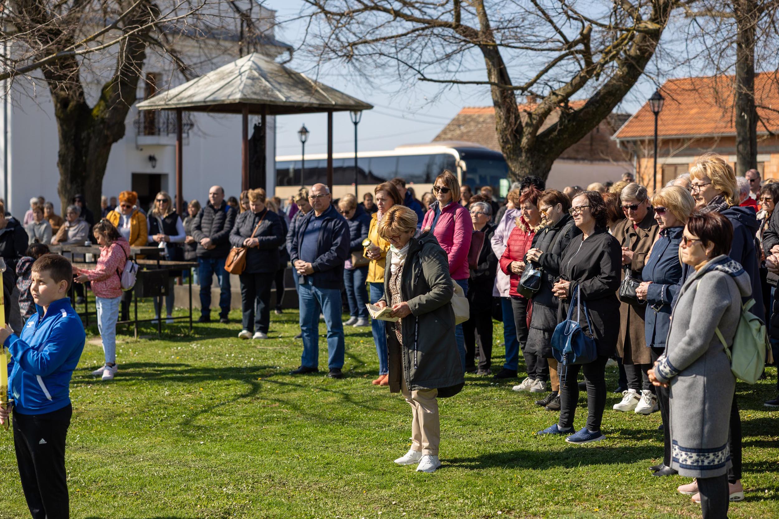 Križni je put unutar svetišta predvodio vlč. Dominik Nedeljković, župni upravitelj Župe sv. Petra apostola u Petrijevcima. Nakon pobožnosti križnoga puta i pristupanja sakramentu svete ispovijedi, vjernici su nastavili svoje putovanje prema Vukovaru gdje je u Crkvi sv. Filipa i Jakova slavljena misa. Prije početka euharistijskoga slavlja riječi dobrodošlice uputio je fra Tonio Vučemilović, župnik i gvardijan Župe i Samostana sv. Filipa i Jakova u Vukovaru.
