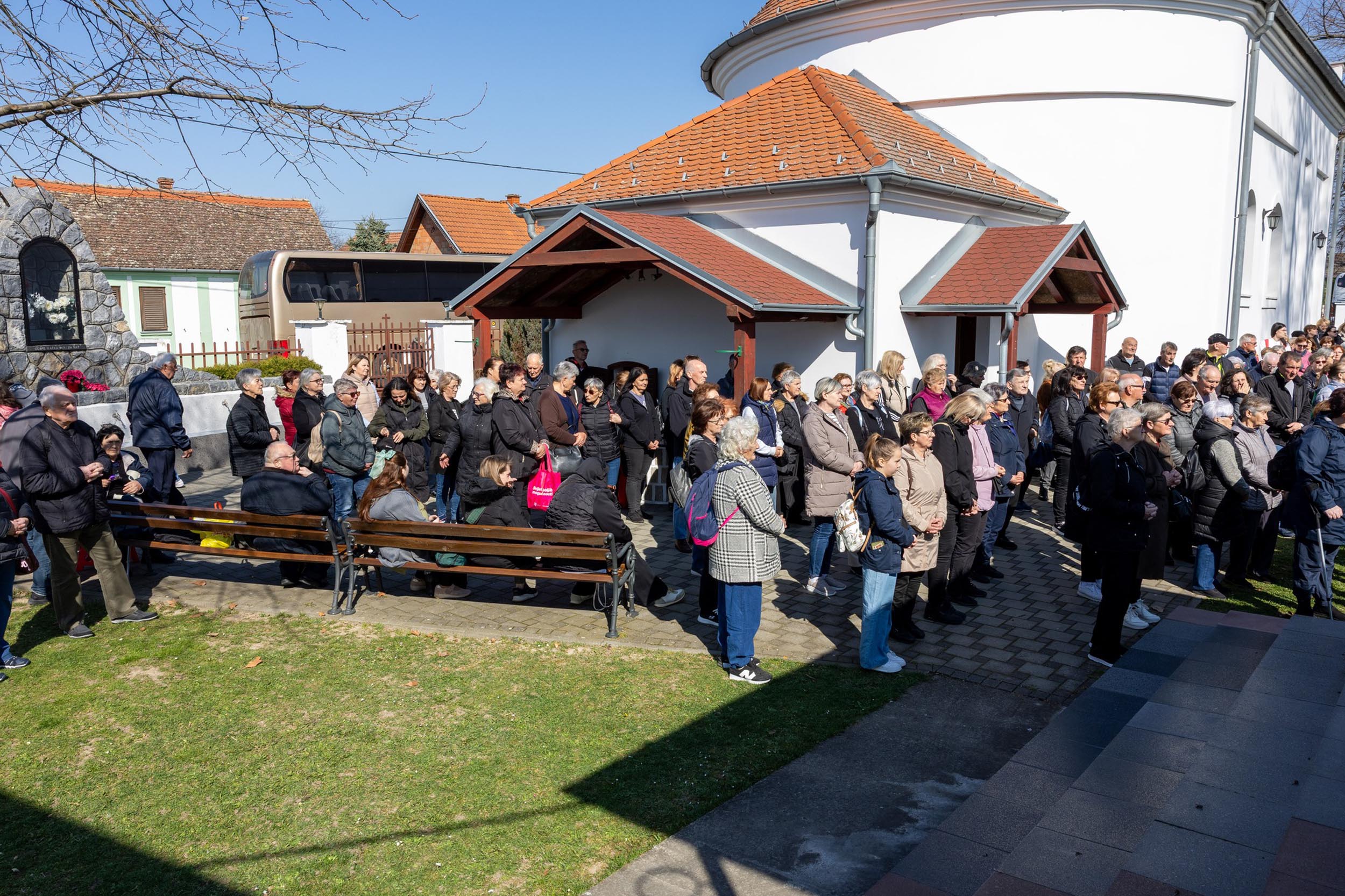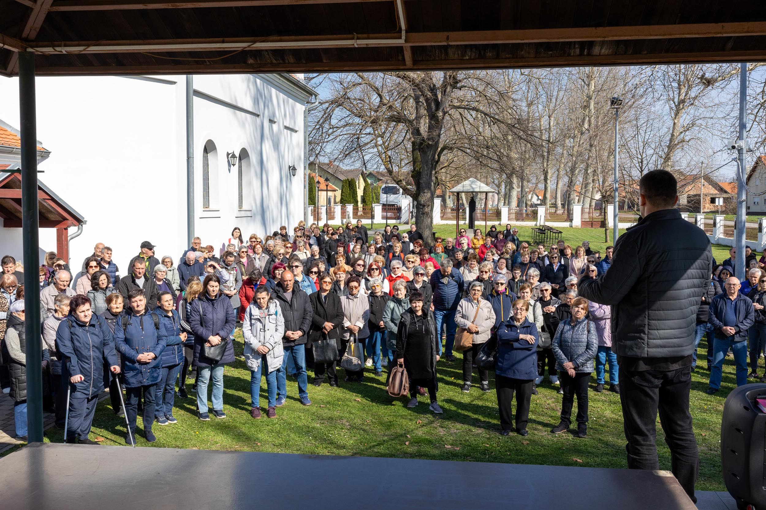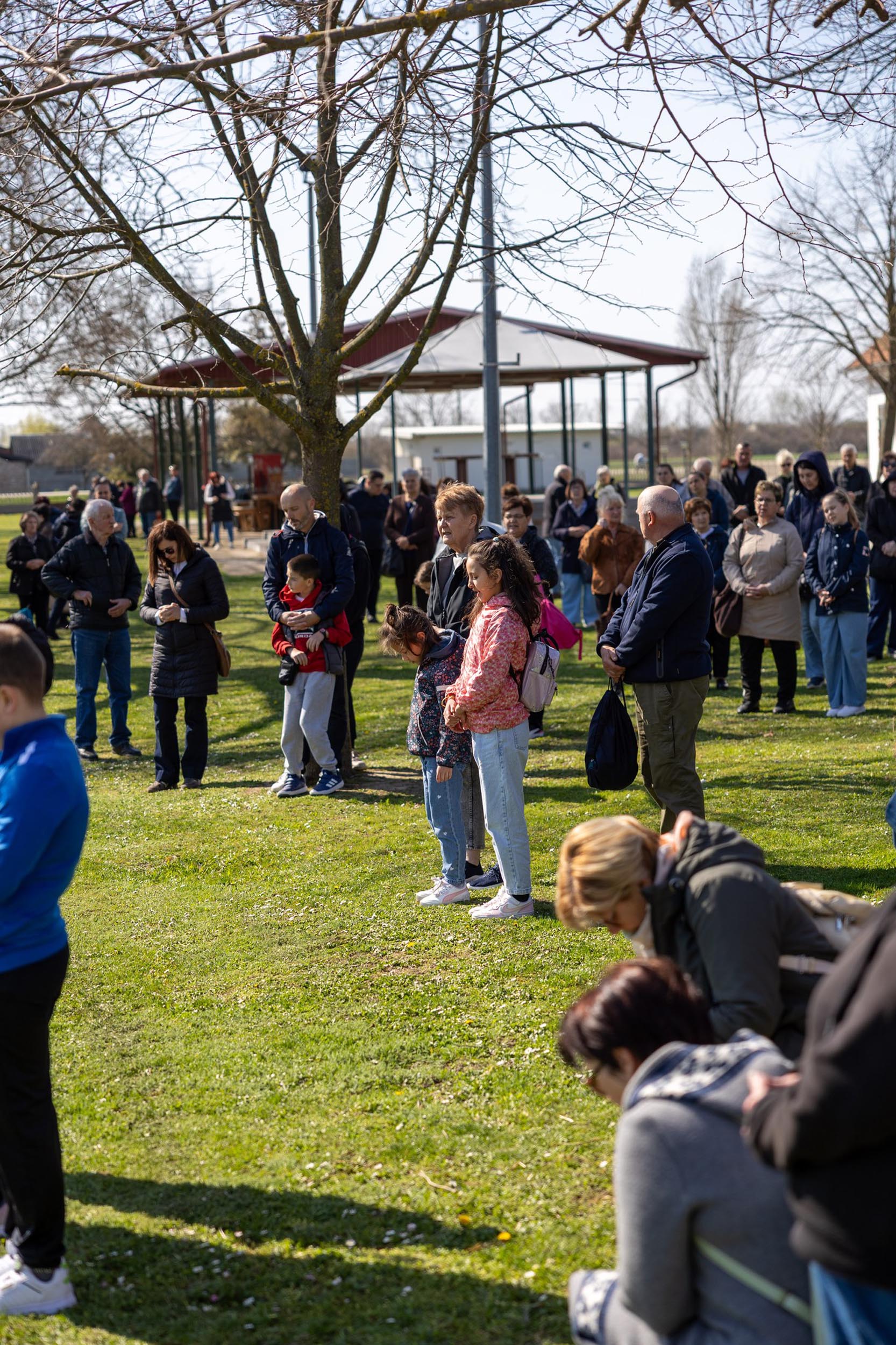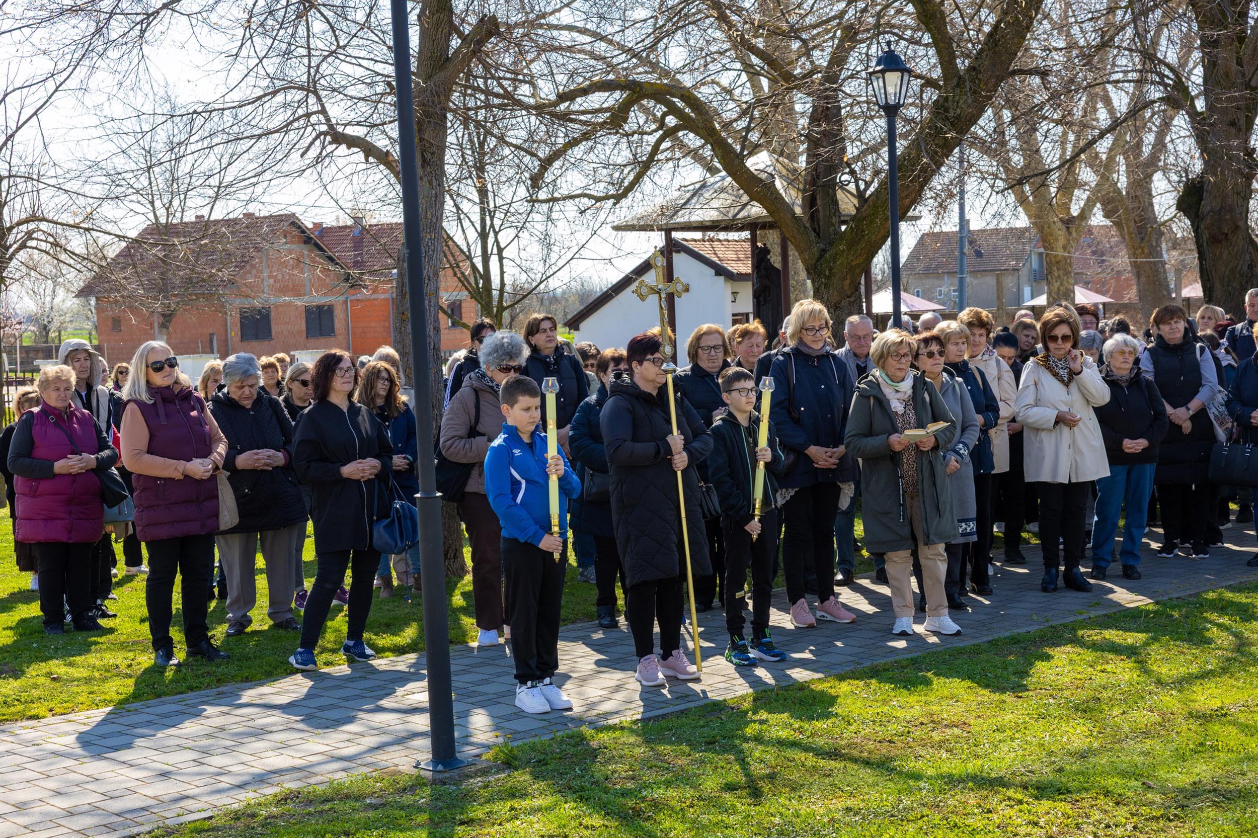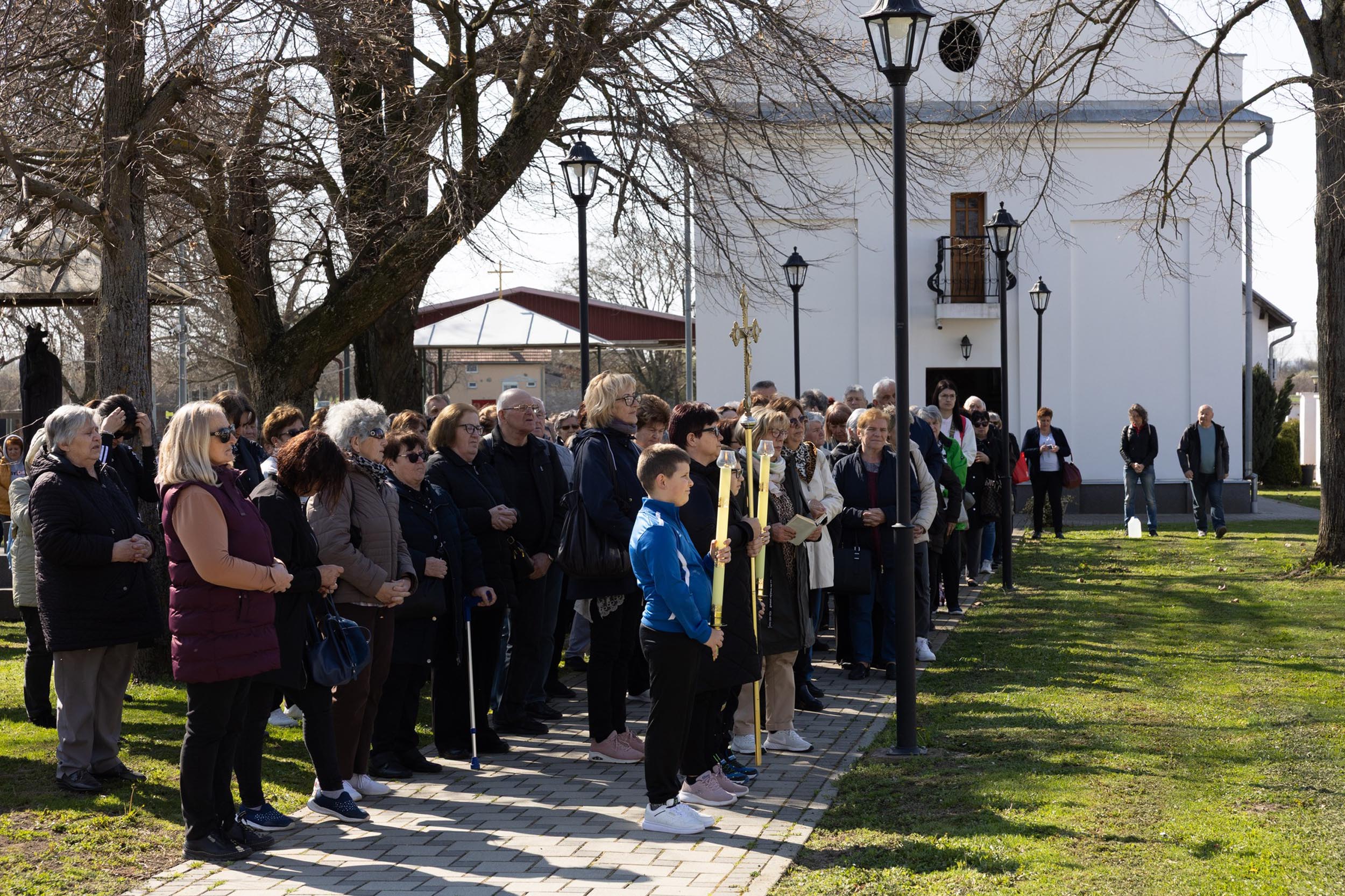 Križni je put unutar svetišta predvodio vlč. Dominik Nedeljković, župni upravitelj Župe sv. Petra apostola u Petrijevcima. Nakon pobožnosti križnoga puta i pristupanja sakramentu svete ispovijedi, vjernici su nastavili svoje putovanje prema Vukovaru gdje je u Crkvi sv. Filipa i Jakova slavljena misa. Prije početka euharistijskoga slavlja riječi dobrodošlice uputio je fra Tonio Vučemilović, župnik i gvardijan Župe i Samostana sv. Filipa i Jakova u Vukovaru.